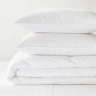 Rest easy: setting up your dream suite is easy with modern bedding. A major consideration is your sheet set. While you can't go wrong with crisp white ones in a percale, sateen or linen, experimenting with a contemporary shade is a fun way to add color in a lowkey way: we love the way blush or mustard sheets peek out from beneath a grey duvet. Once the sheets and pillowcases are set, think about a blanket, quilt or duvet depending on your sleeping style. If you're always craving the cool side of the pillow, a lightweight quilt or blanket might be your best bet. Or, keep things extra cozy with a down duvet. Either way, let the designs of the modern bedding tie your look together. Whether you prefer a zen color combo of white and green or a boho feel that has a playful mix of patterns, the top layer of your bed plays up your aesthetic.