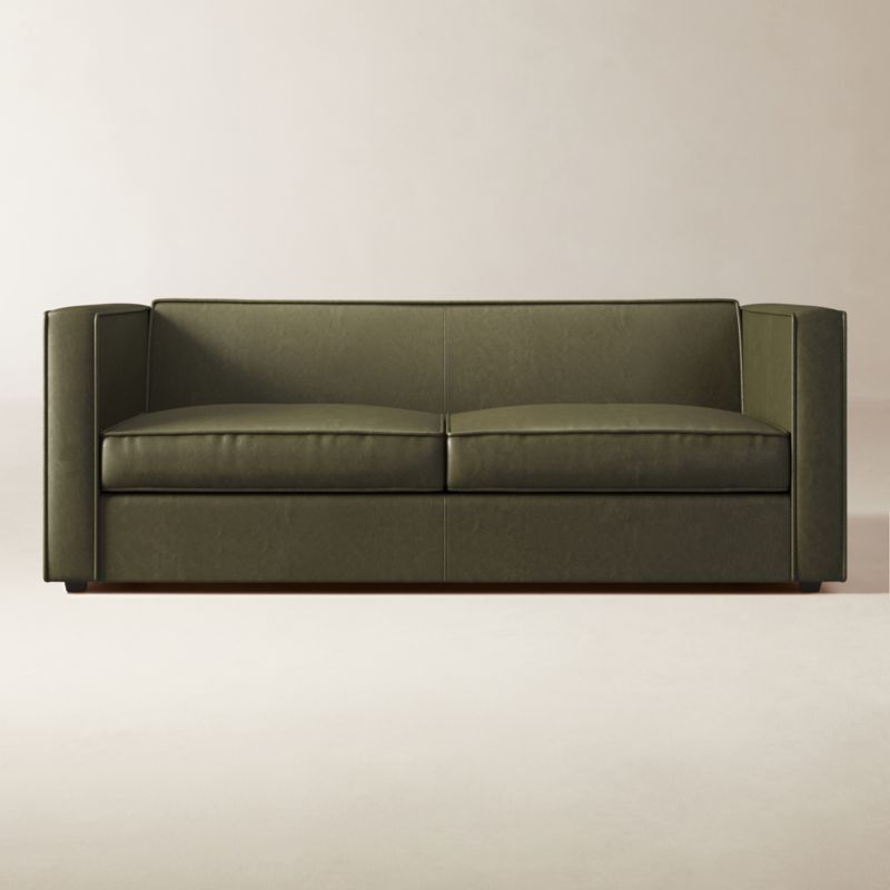 Assembled in North Carolina, leather sofa is perfectly proportioned for stretching out solo or hanging with a crowd. We love the impromptu feel of the intentional seat cushion overhang and back that curves to support just where you need it. CB2 exclusive.