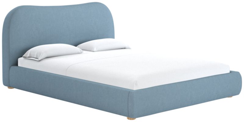 With its shapely curves and cloud-like presence, bed designed by Ross Cassidy is reminiscent of 1930s Italian design. The fabric wraps a frame supported by honey oak round legs. A subtle nod to traditional camel-back silhouettes with a dose of Ross' signature flair. CB2 exclusive.