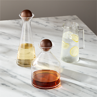 Raise your cup. Whether you're the type to partake in happy hour or just enjoy watching from the sidelines, let contemporary drinkware and bar accessories take center stage. Want to show off your newly-minted mixology skills? Invite the gang over for a casual hangout. Begin by stocking the bar cart's shelves with the basics. Think old-fashioned and cocktail glasses for friends who know what they like, and wine glasses for those who fancy themselves connoisseurs. Keep chaser and martini glasses nearby as well for the wild cards in your group. Want to keep it low-key yourself? Fill a pitcher with ice cold water that's infused with a cucumber or lemon—helping you maintain hydration between rounds. No matter your style, coasters preserve the like-new look of your tall table, while reusable straws coincide with the room's environmentally-friendly vibe.