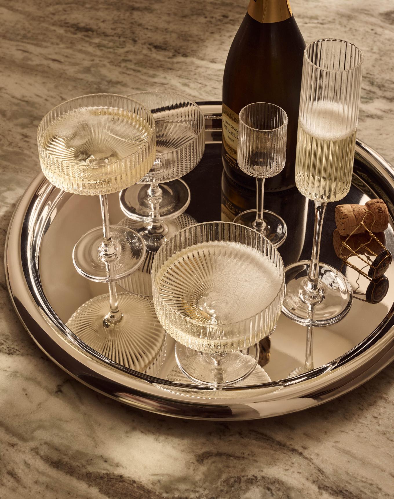 Raise your cup. Whether you're the type to partake in happy hour or just enjoy watching from the sidelines, let contemporary drinkware and bar accessories take center stage. Want to show off your newly-minted mixology skills? Invite the gang over for a casual hangout. Begin by stocking the bar cart's shelves with the basics. Think old-fashioned and cocktail glasses for friends who know what they like, and wine glasses for those who fancy themselves connoisseurs. Keep chaser and martini glasses nearby as well for the wild cards in your group. Want to keep it low-key yourself? Fill a pitcher with ice cold water that's infused with a cucumber or lemon—helping you maintain hydration between rounds. No matter your style, coasters preserve the like-new look of your tall table, while reusable straws coincide with the room's environmentally-friendly vibe.