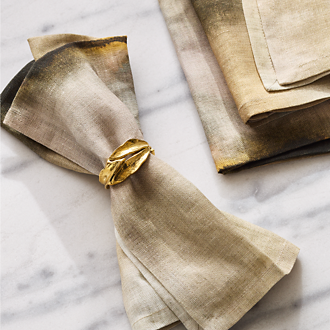 Hosting a fancy get together? Ready your dining table with modern and unique table linens. Elevate the evening by draping a table runner over its center. For a breezy daytime gathering, go for neutrals featuring geometric patterns. Then, take your basics up a notch with on-trend serveware and platters arranged along the fabric. For an evening soiree, swap out bright colors for something darker—think: black or grey textiles beneath flickering candlelight. Rather use table linens to show off your eclectic taste? Lay down a whimsical print to create an unexpected focal point, and tie the look together with neutral serving dishes and dinner plates. Define your place settings with coordinating napkins folded to house flatware or tugged through a simple metal napkin ring. For everyday dining, save your table from heat and mess with easy-to-clean placemats in faux leather or traditional vinyl. Or, choose metal placemats that double as oversized trivets.