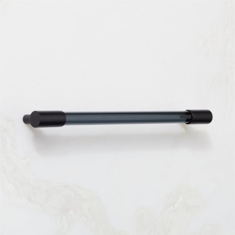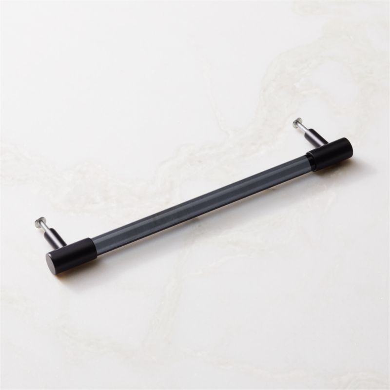 Framed by black brass hardware, smoked crystal adds a femine touch to this elegant handle. Pairs with the Flynn knobs for a cohesive look. CB2 exclusive.