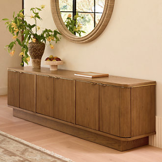Give all your stuff a place of its own with chic, modern storage furniture. Is your TV still sitting on that coffee table from college? It's time for a change. Set it atop a media console that's got space to stash all your binge-watching essentials. Then, expand your storage options throughout the home with bookcases, storage cabinets and even entryway storage furniture to help corral shoes and cold-weather accessories in the foyer. Choose modern furniture with closed storage to keep your stuff out of sight and promote a minimalist aesthetic, or proudly display your favorite knicknacks by opting for cool contemporary furniture with open shelving. When privacy and protection are paramount, a storage cabinet with doors strikes the perfect balance, offering both accessibility and discretion. Display cabinets, with their transparent glass panels and thoughtfully designed shelving, turn your collectibles into works of art themselves, adding an elegant touch to your home.