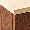 Minimalist white oak media console by Barcelona-based Mermelada Estudio is designed to give full expression to the wood. The streamlined silhouette reveals a juxtaposition of crisp corners and rounded legs that finish in an arc at each end. Topped with a slab of honed travertine for a raw finish with visible unfilled pitting. CB2 exclusive.