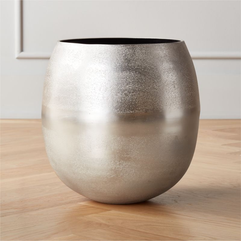 Cast aluminum vessel sets a chic spot for your favorite indoor plants. Unique finish is the signature result of rough casting––an organic, pitted texture that mirrors the natural imperfections and divots from the molding process. Pairs perfectly with Rough Cast Pitted Platinum Large Planter. CB2 exclusive.