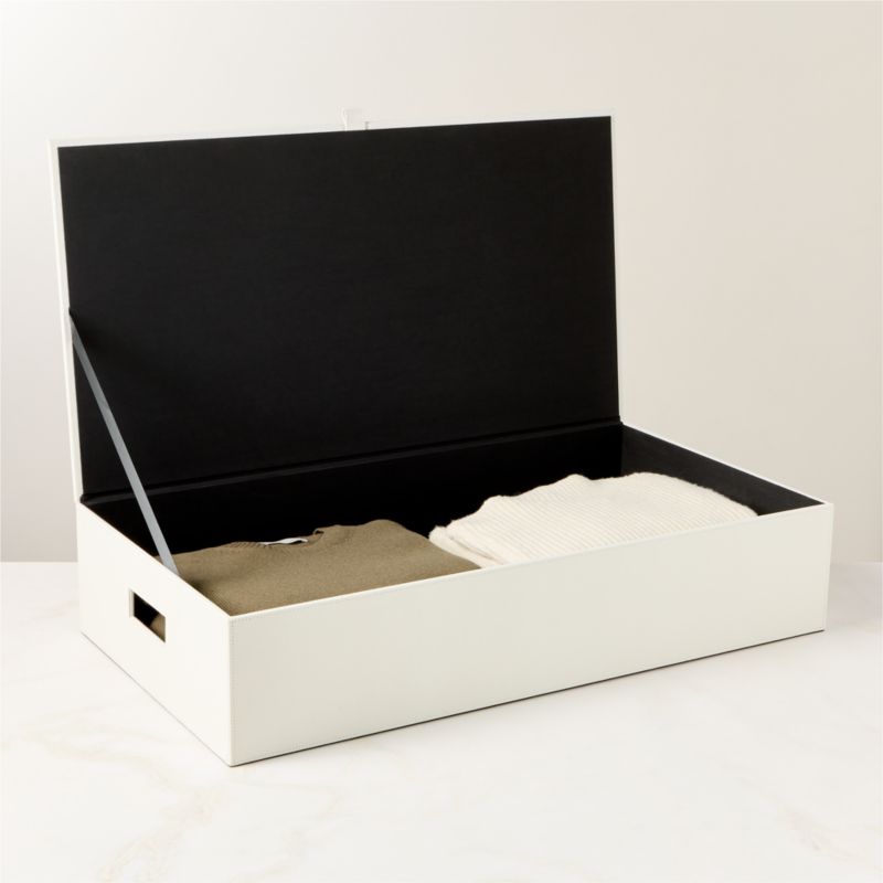 Faux shagreen box provides elegant storage for shoes and more. Highly coveted by French designers during the Art Deco era, shagreen was traditionally sourced from natural stingray hides for its rich, pebbled texture. Ivory faux shagreen is used here to recreate the look and feel of its natural counterpart. CB2 exclusive.